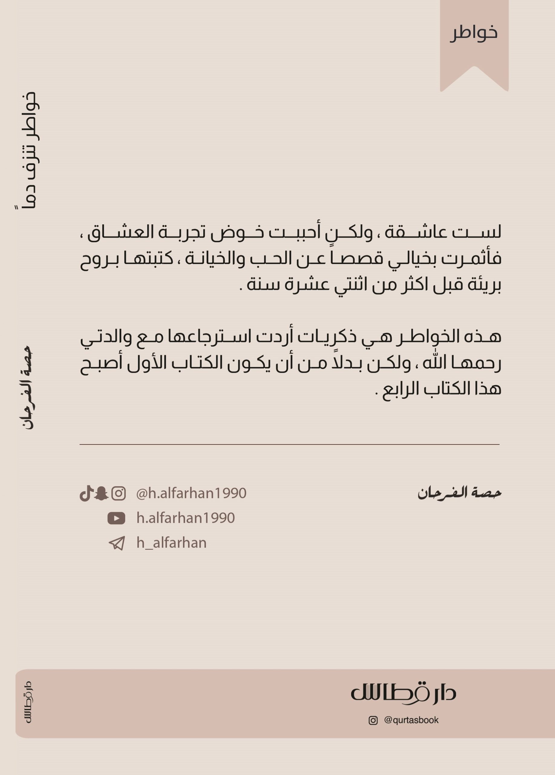 هذه الخواطر هي ذكريات أردت استرجاعها مع والدتي رحمها الله ، ولكن بدلاً من أن يكون الكتاب الأول أصبح